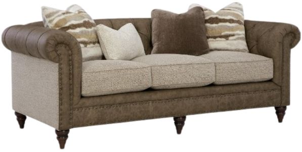Casual luxury and sophisticated styling meld together to bring a modern update to this classic Chesterfield sofa. Covered in both leather and fabric, it has a unique blended look that can be fully customized with any fabric and leather in our line.Read More