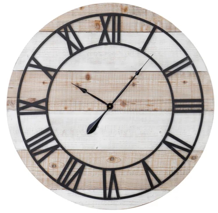 Black accented clock arms and numerals