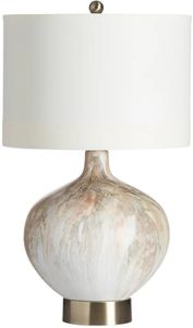 The Crestview Collection Sumner Table Lamp features a ceramic base with marbleized hues of blush, cream and pistachio green. Offering a soft, serene finish perfect for your traditional style decor. Mounted on a deep, brushed brass base and topped with an ivory linen shade with tuxedo taping. Flawless elegance for any interior.Read More