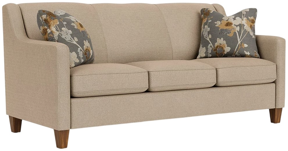 The Holly fabric sofa brings clean, modern style to your home with straight lines, a low profile, exposed wood feet, and soft, smooth cushions.