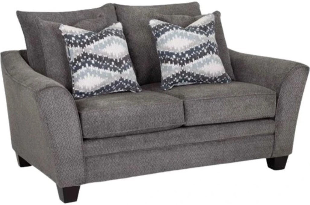 Experience a touch of “flare” with the meticulously crafted 910 Eastbrook collection. This thoughtfully designed collection includes a sofa, loveseat, chair and half and matching ottoman. All pieces are upholstered in a soft, durable gray fabric that is contrasted with coordinating accent pillows.Read More