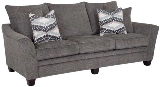 Experience a touch of “flare” with the meticulously crafted 910 Eastbrook collection. This thoughtfully designed collection includes a sofa, loveseat, chair and half and matching ottoman. All pieces are upholstered in a soft, durable gray fabric that is contrasted with coordinating accent pillows.Read More