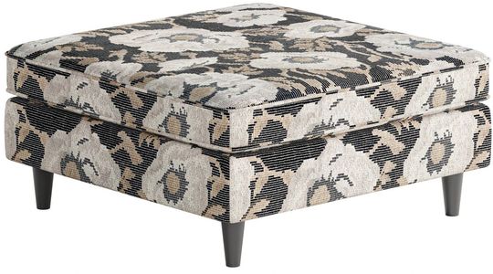 The Bloom Carbon ottoman is a beautiful accent to any sitting area in the house. The box border welt top, abstract pattern, and dark finish splayed legs make this a fun ottoman and a conversation piece in any room.Read More