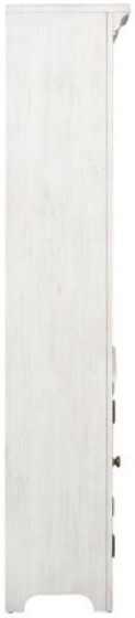 Storage abounds with three adjustable shelves, one located behind the planked doors. The antique white finish with chestnut accents results in a look that is compatible with today's homes.