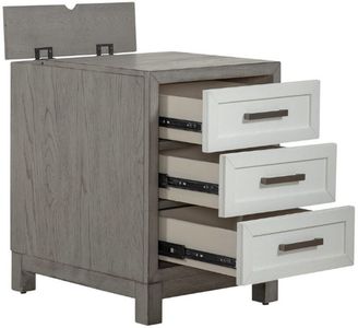 Home and perfection are achievable with the Palmetto Heights three drawer chairside table. Crafted with excellence using rubberwood solids and split heart cathedral white oak veneers, this three drawer chairside table features a two-tone Driftwood and Shell White finish.Read More