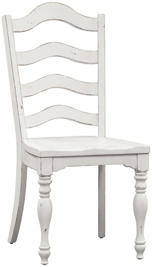 Sit in comfort with the Magnolia Manor ladder back side chair. Crafted of rubberwood solids, this piece features the perfect blend of European design, nylon chair glides to protect your flooring, and an arched back and wooden saddle seat, anchored by beautifully turned legs.Read More