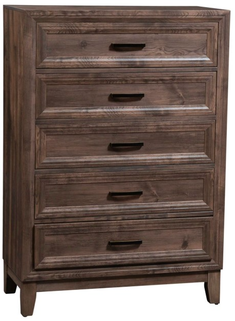 Enhance any room with this urban styled chest. This piece features bottom case dust proofing and picture framed drawer fronts. This piece is softened by the canted molding and anchored by a tapered leg base. The antique brass hardware compliments the cobblestone finish effortlessly and is sure to add dimension to your room.Read More