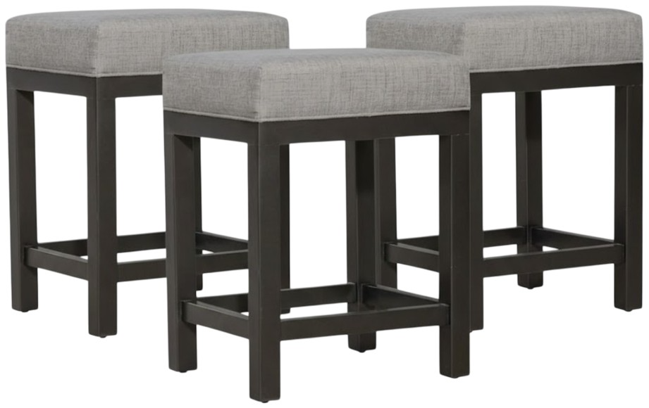 Simple and stylish, the Tanners Creek console stools are constructed of solid rubberwood block legs in a graystone finish with a padded upholstered seat in a grey tweed fabric. Set includes three stools.Read More
