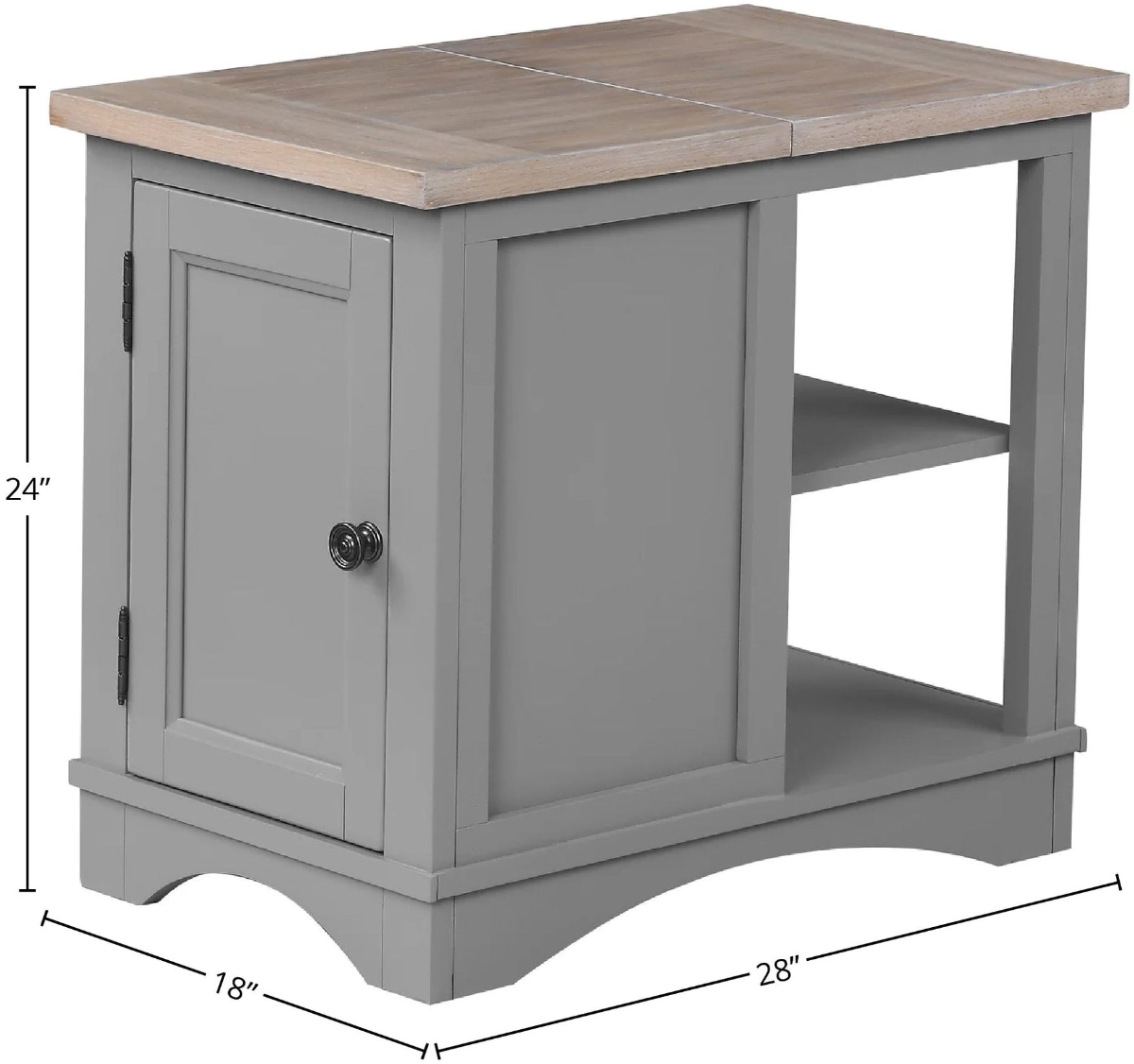The ultimate addition to any chair or sofa, the Americana Modern Chairside Table adds style and function to a space. Crafted in a dove grey finish with contrasting wood-grain top, it features adjustable display shelves and a closed compartment for storage. Charging your devices has never been more convenient than with its power center featuring dual AC and USB outlets.Read More