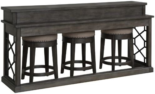 You can expect this Everywhere console with 3 stools from the Sundance collection to become everyone's new favorite hangout. It works beautifully behind a sofa or in a nook to create a flexible casual dining area. The soft hand-applied, multi-step finish in smokey grey complements any room's color scheme.Read More
