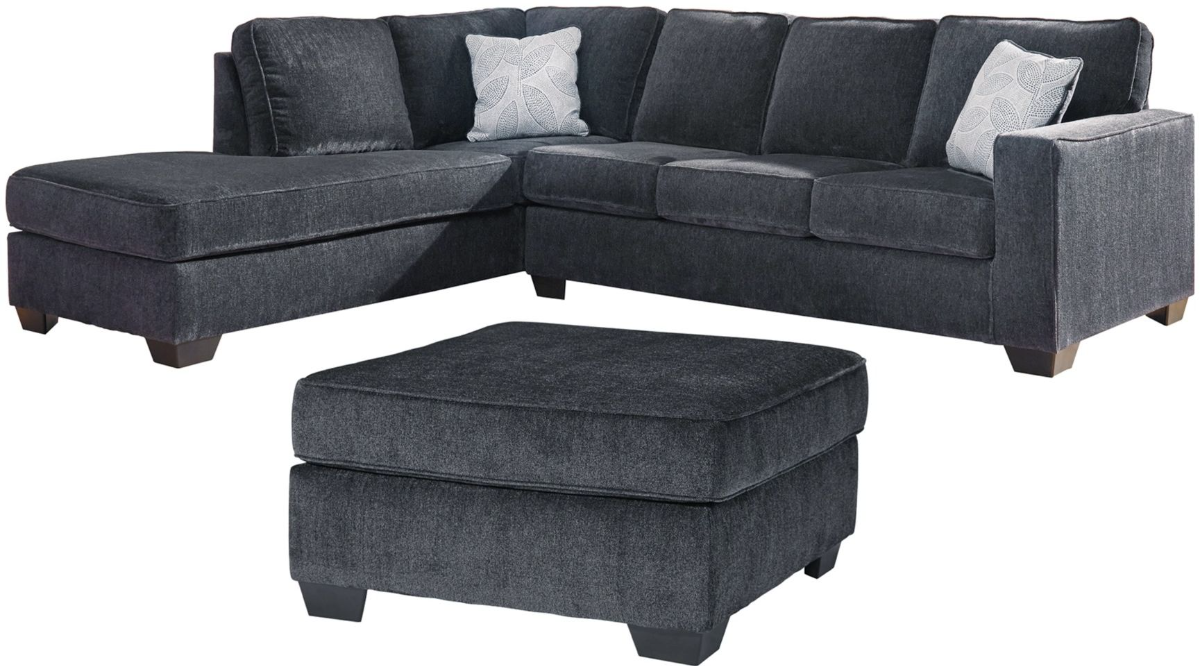 Includes 2-piece sectional (with left-arm facing corner chaise and right-arm facing sofa) and ottoman