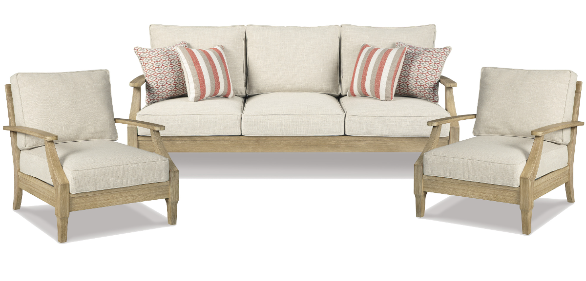 From large gatherings to family meals outside, the Clare View collection is always in season. Nestle in on the Clare View collection with all-weather back and seat cushioning support and 4 decorative throw pillows.