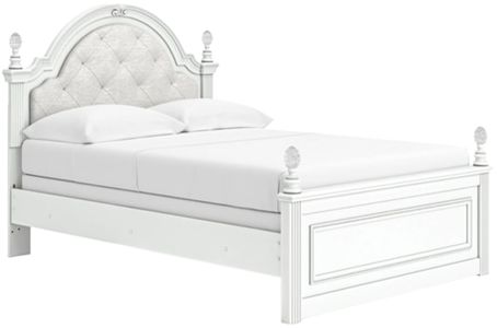 Fit for a princess. This full upholstered panel bed’s crisp matte white finish pairs with charming ornate beading and sumptuous button-tufted upholstery—perfect for your girly girl. Decorative ball tops and multicolored LED lighting in the headboard are the crowning touches to make your little one feel like royalty.Read More