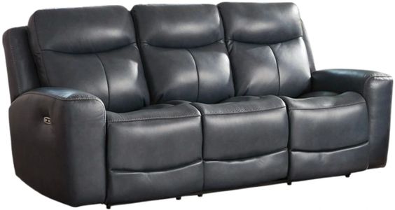 Prepare to be moved. This power reclining sofa combines sleek modern design with all the soothing features you've been dreaming of. Wrapped in blue-hued leather and faux leather for affordable luxury, this highly contemporary piece with cozy scoop seating suits your relaxed vibe. Infinite reclining and headrest positions are yours at the touch of a button.Read More