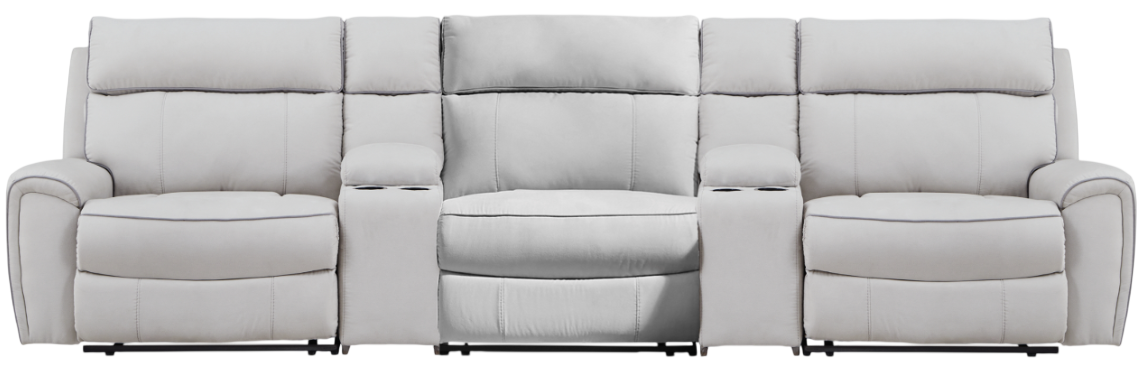 Includes 5 Modular Pieces: Left-arm facing power recliner, power armless recliner, 2 consoles with storage and right-arm facing power recliner