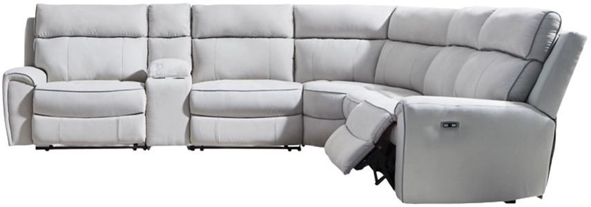 Includes 6 Modular Pieces: Left-arm facing power recliner, 2 armless chairs, console with storage, wedge and right-arm facing power recliner