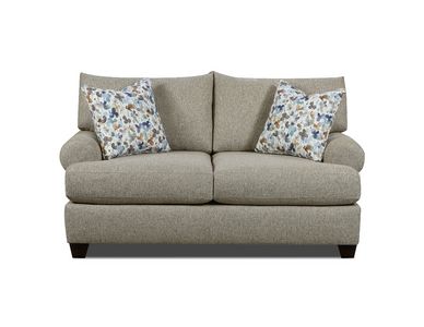 Customize it in your choice of fabric options. It is sure to be a hit in your living space with cool gel top seat cushions for added comfort. What's more, this loveseat is made in the USA and features recycled fiber in its back cushions and accent pillows for an eco-friendly bonus.