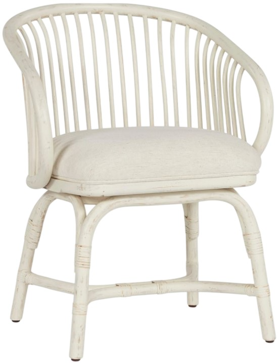 Casual yet contemporary, the Aruba Rattan Chair showcases a rounded, open-air back with gently integrated texture details, a crisp white finish, and a plush upholstered seat. Designed for comfort and durability, it adds a light, airy feel to any space, making it a versatile and stylish choice for dining or lounging.Read More