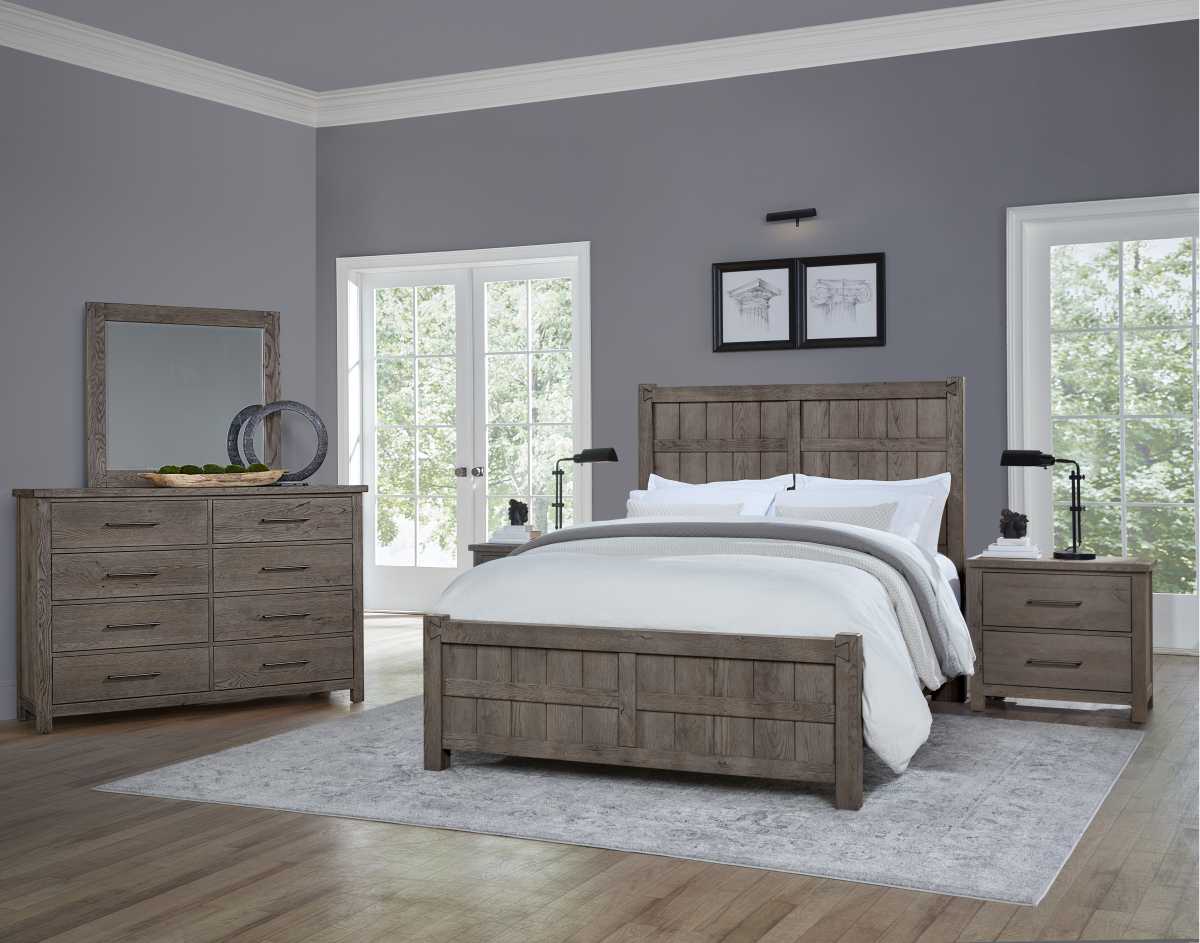 This unique Board and Batten bed was inspired by the construction of an antiqued, hand hewn canoe. Vaughan Bassett has developed a patent-pending process that allows them to accelerate how wood ages. We have kept the splits, knots, cracks, and the bold grain pattern found in Oak lumber to create this reclaimed look in this beautiful and unique bedroom collection. At Vaughan-Bassett, we take pride in bringing you well-crafted furniture at affordable prices. Our commitment to quality has earned us the respect of our customers and made us the largest manufacturer of wooden adult bedroom furniture in the country. Our beautiful furniture line is made by 700 American craftsmen. We replace every tree used to make our products. Explore our many styles, beautiful finishes, and find the furniture that fits your decorating style.